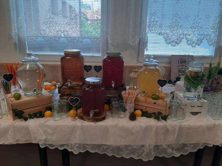 Též Vám navrhneme originální limonádový bar a zapůjčíme soudky s kohoutkem. Nesmí chybět ani stylové limonádové skleničky a brčka - samozřejmě papírová, abychom šetřili životní prostředí.